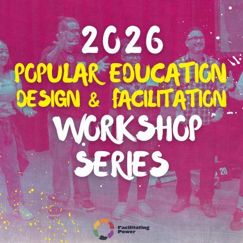 Designed for community leaders, organizers, educators, and facilitators, each session provides practical tools, frameworks, and embodied experiences that strengthen your capacity to design and facilitate powerful learning-to-action processes. Through participatory workshops and a growing community of practice, we’ll cultivate the skills, imagination, and courage needed to guide our communities toward shared liberation. Click here to learn more and sign up for individual workshops offered at sliding scale prices from $40-80).